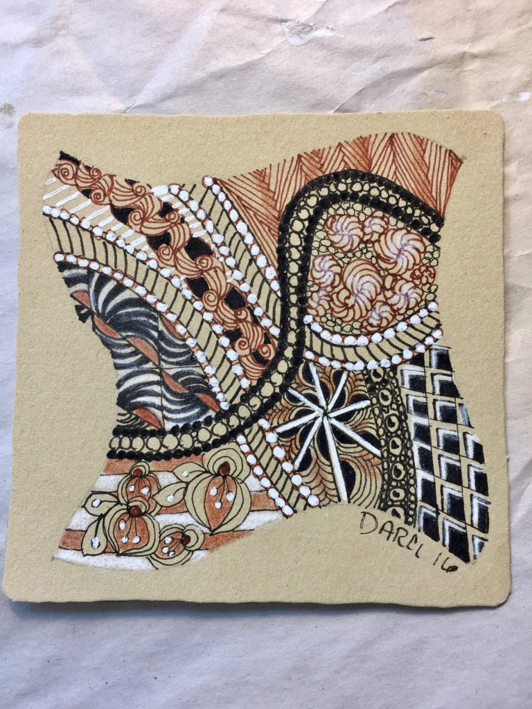 I thought I’d gather and share a few of my past creations inspired by Audrey during so many amazing classes over the years. Zentangle is super easy to learn, perfect for creating a piece of art with few supplies, just a few lessons, and in a short time… all while being immensely satisfying and relaxing. There are no mistakes! If you can doodle, you can Zentangle. If your hand leads your pen in a direction you didn’t expect, all the better! Mostly, you can use it to unclutter the mind, and restart that imagination.