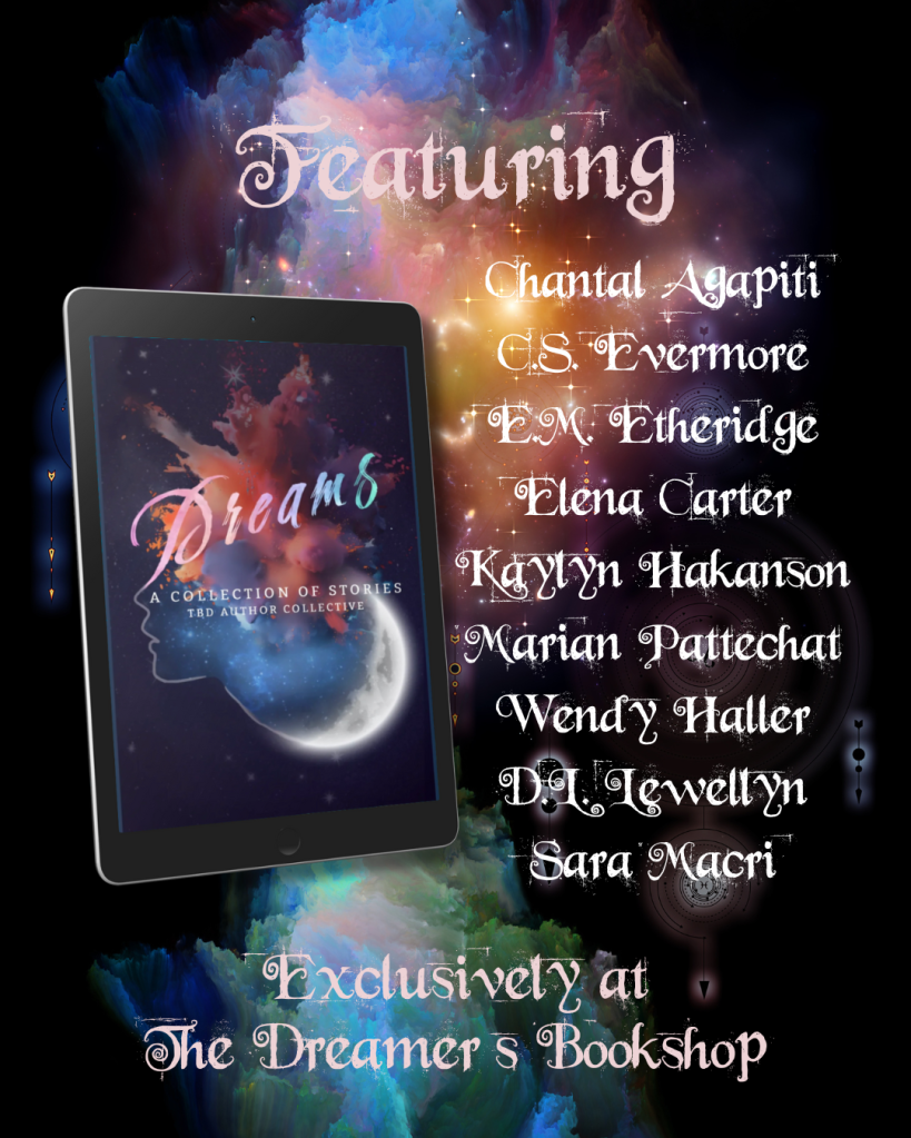 I’m very excited to present a new anthology brought to you by The Dreamer’s Bookshop (TDB) Author Collective. If you love poetry and stories in multiple genres all about DREAMS, you can support the authors, including me, by purchasing the book and wonderful merch directly through the charming little shop in Belgium. The gorgeous paperback is also available on Amazon. Click below.