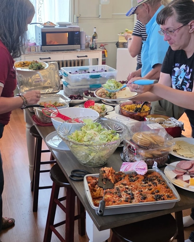 I’ll conclude by bringing things full circle—the socializing. The Art Center has two kitchens on the first floor: one features a large dining table for gatherings, and the other contains a massive iron cooking stove that, unfortunately, can no longer be used due to safety issues, but it is a sight to behold. Kim ensured there was plenty of excellent food and beverages. We all contributed dishes for the Friday night potluck, which provided delicious leftovers for our lively mealtime conversations throughout the entire weekend.