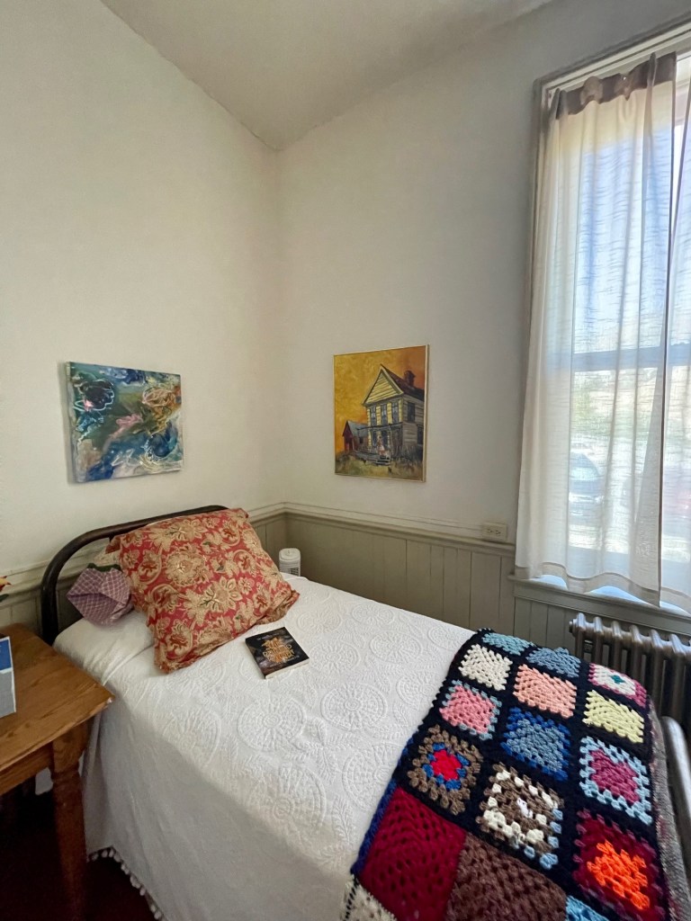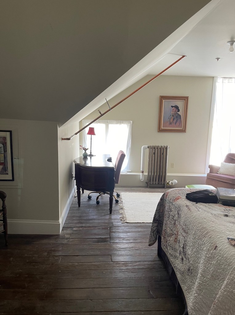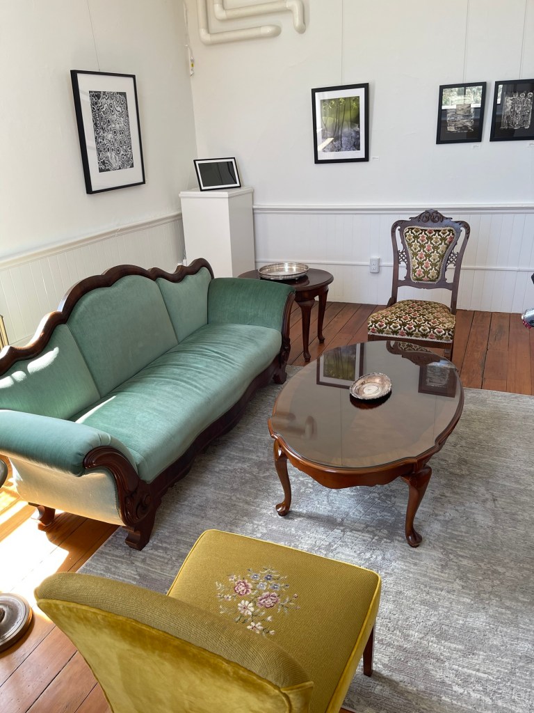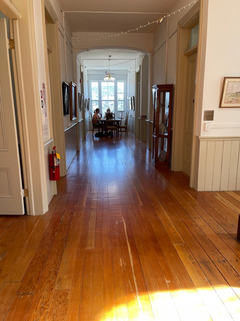 Here I am with our excellent host, Kim Harnes. Check out the comfortable, historical surroundings. You’ll notice many features and artifacts from the original Victorian hospital. Imagine how the rooms were once used for surgical and other treatments, or part of the recovery wards, and then add art. What a great combination.