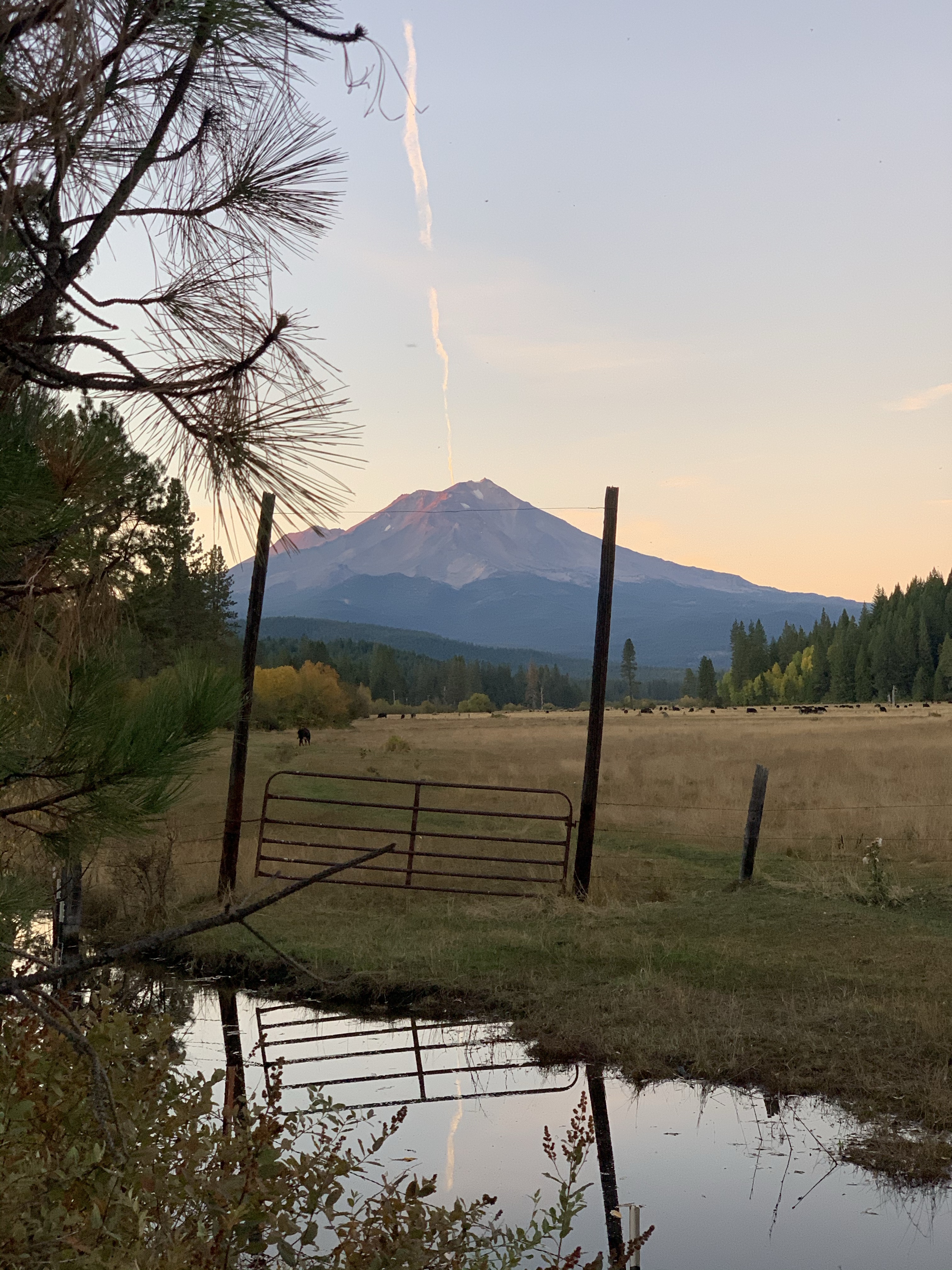 Looking out my window reminds me of the taller (14,179 ft, 4,322 m) Mount Shasta, a stratovolcano that casts its shadow over my hometown in Siskiyou County and entered my psyche the moment I was born.
