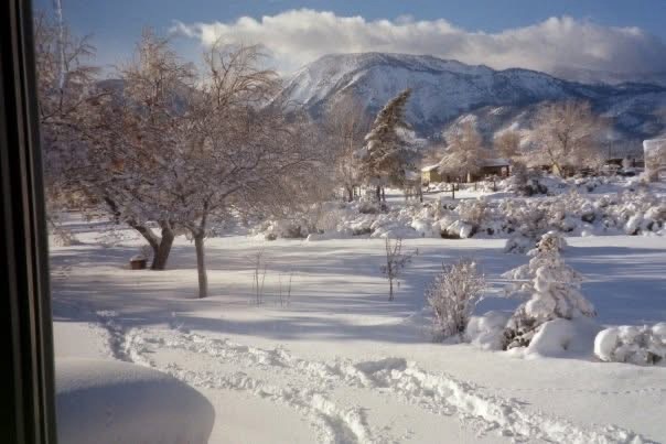 I love the climatic contrasts in high deserts, namely how I end up peeling off layers outdoors even clomping around in the snow thanks to being closer to the sun and the low humidity. We average 300 sunny days a year. Don’t get me wrong, winter storms can be a… Well, you know. Sometimes we’re blasted by thunderous, violent gusts up to 85 miles an hour, making the snow blizzardy, and knocking out our power. It can be scary. But the tranquility is worth it when it all settles down, and the sun never takes long to pop back out.